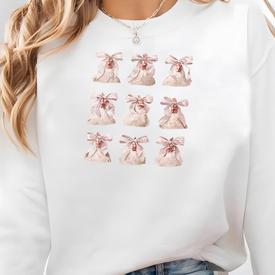 Chicken Bow Shirt, Cute Chicken Shirt, Ladies Chicken Tee, Chicken Lovers Shirt, Farm Animals Bows, Chicken Lovers Gift, Fluffy Chickens Sweatshirt