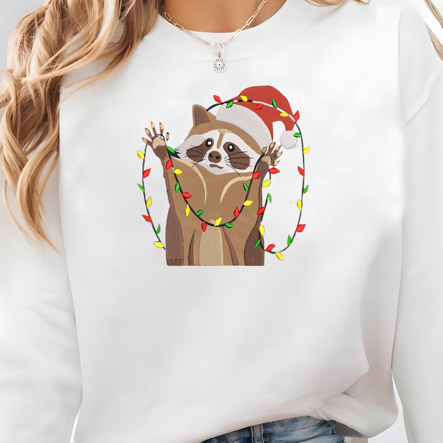 Christmas Racoon Sweatshirt, Funny Christmas Lights Raccoon Sweater, Happy Holiday Christmas Shirt, Christmas Racoon Shirt Sweatshirt