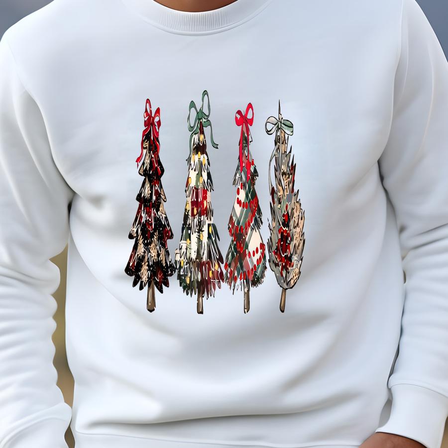 Plaid Christmas Tree Shirt - Xmas Holiday Sweatshirt - Leopard Graphic Xmas Hoodie - Rustic Cozy Graphic Tee - Farmhouse Print Gift Sweatshirt