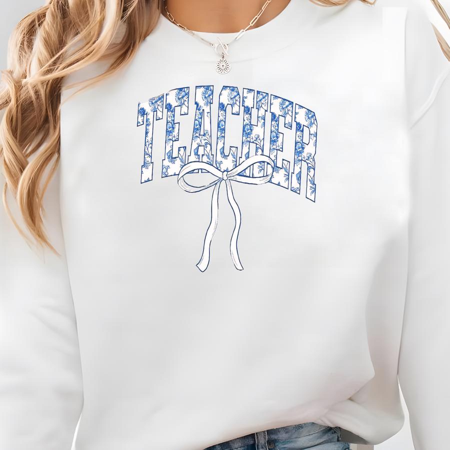 Chinoiserie Coquette Bow Teacher Shirt, Gift For Teacher Appreciation, Matching Teacher Tees For The Back To School Sweatshirt