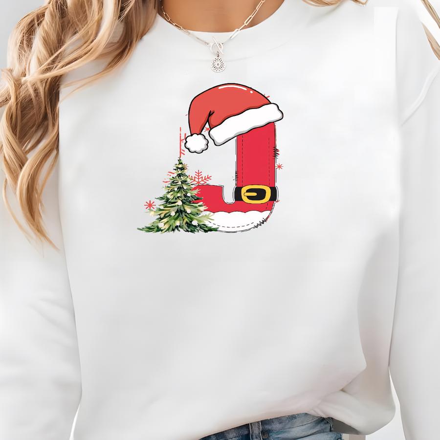 Custom Name Christmas T-shirt, Custom Letter Name Holiday Tee, Personalized Letter Christmas Graphic Top, Cute Holiday Wear Sweatshirt