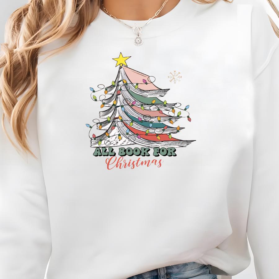 All Book For Christmas Sweatshirt, Book Tree Sweater, Book Lover Christmas Gift, Christmas Book Shirt, Bookworm Christmas Sweater Sweatshirt