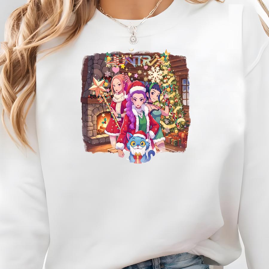 Huntrix Christmas Sweatshirt,rumi Mira Zoey, Christmas Light Gift, Derpy Tiger Christmas Party Tee, Anime Christmas Sweatshirt Sweatshirt