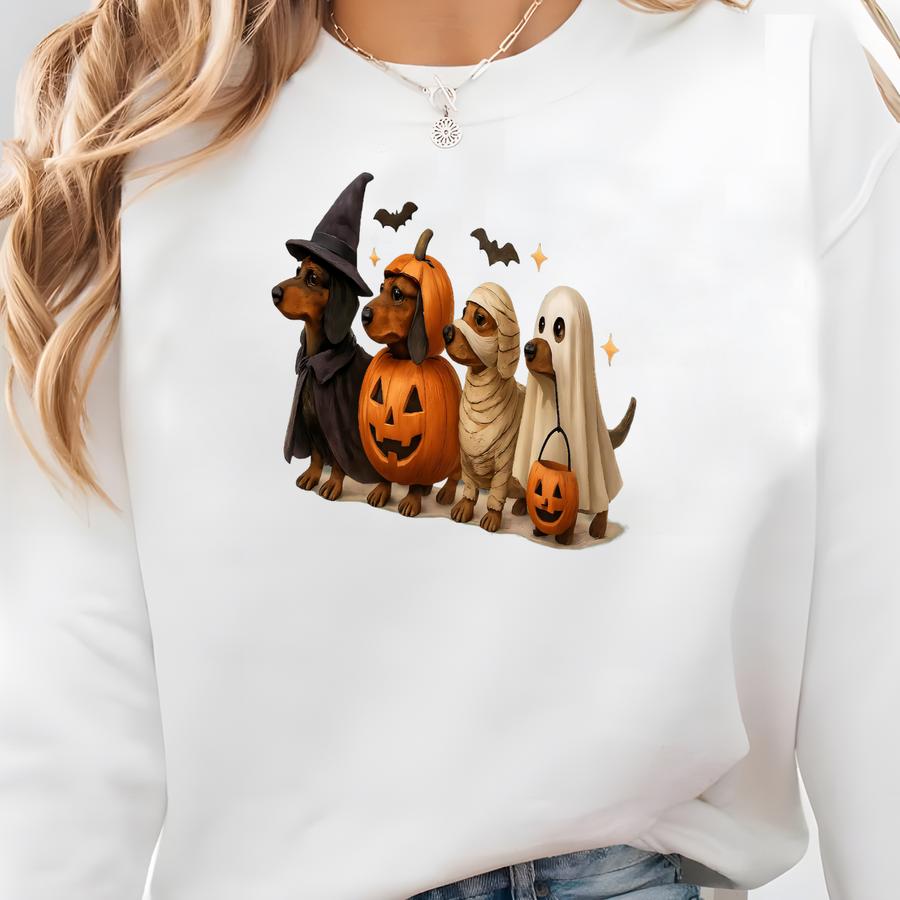 Dachshund Dog Halloween Shirt: Cute Wiener Dog Pumpkin Cotton Tee Sweatshirt