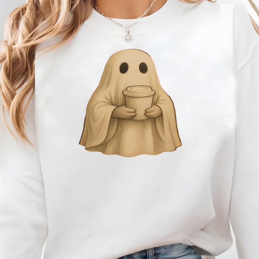 Retro Ghost With Coffee Shirt: Halloween Tee Sweatshirt