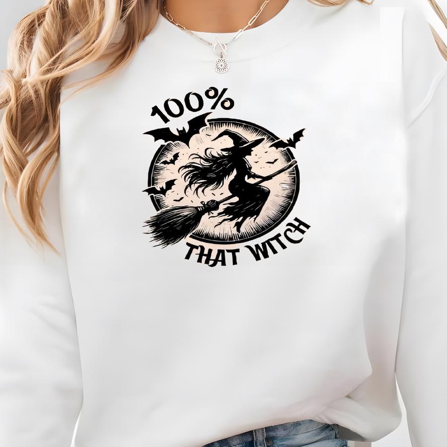 Halloween 100% That Witch Sweatshirt, Witch Sweatshirt, Spooky Sweatshirt, Witch Shirt, Halloween Shirt, Fall Shirt, T-shirt Sweatshirt