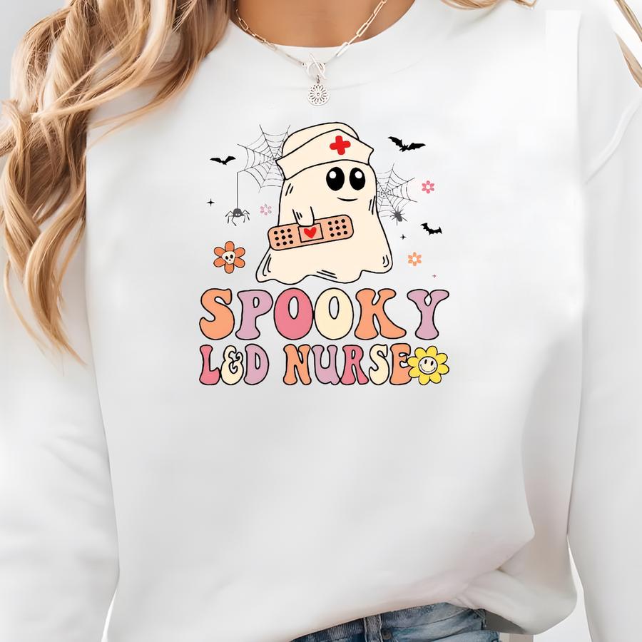 Spooky Ld Nurse Shirt, Halloween Nurse Tee, Cute Ghost Nurse T-shirt, Labor And Delivery Nurse Halloween Shirt, Nurse Appreciation Tee Sweatshirt