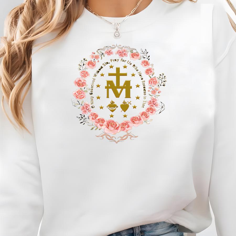 Marian Cross Catholic Shirt: Virgin Mary Crewneck Sweatshirt