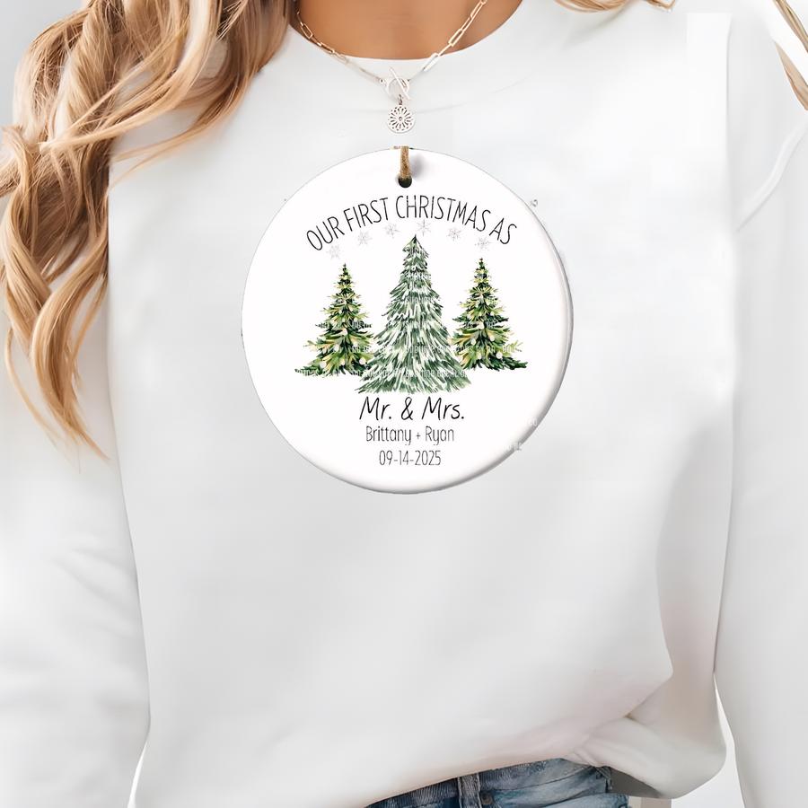 Our First Christmas As Mr. Mrs 2025 Ornament, Newlywed Christmas Ornament, Wedding Keepsake Ornament, Personalized Couple Gift Sweatshirt