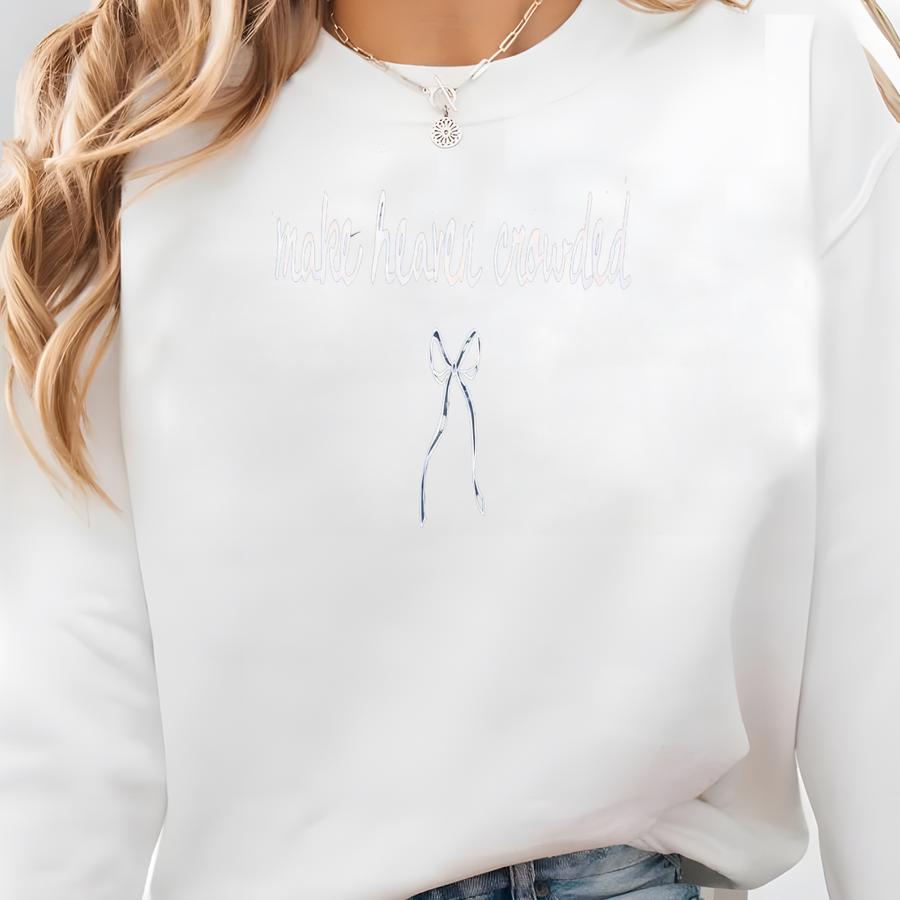 Make Heaven Crowded Bow Christian Tee Shirt | Faith Based Crewneck | Religious Quote Shirt | Christian Gift For Women Sweatshirt