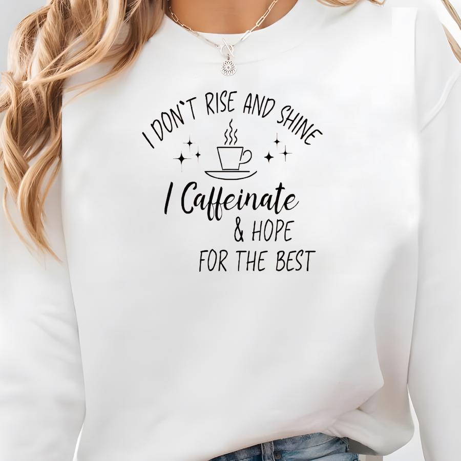I Don't Rise Shine I Caffeinate And Hope For The Best Sweatshirt, Coffee Lover Crewneck, Coffee Lover's , Funny Mom Hoodie, Gift For Women Sweatshirt