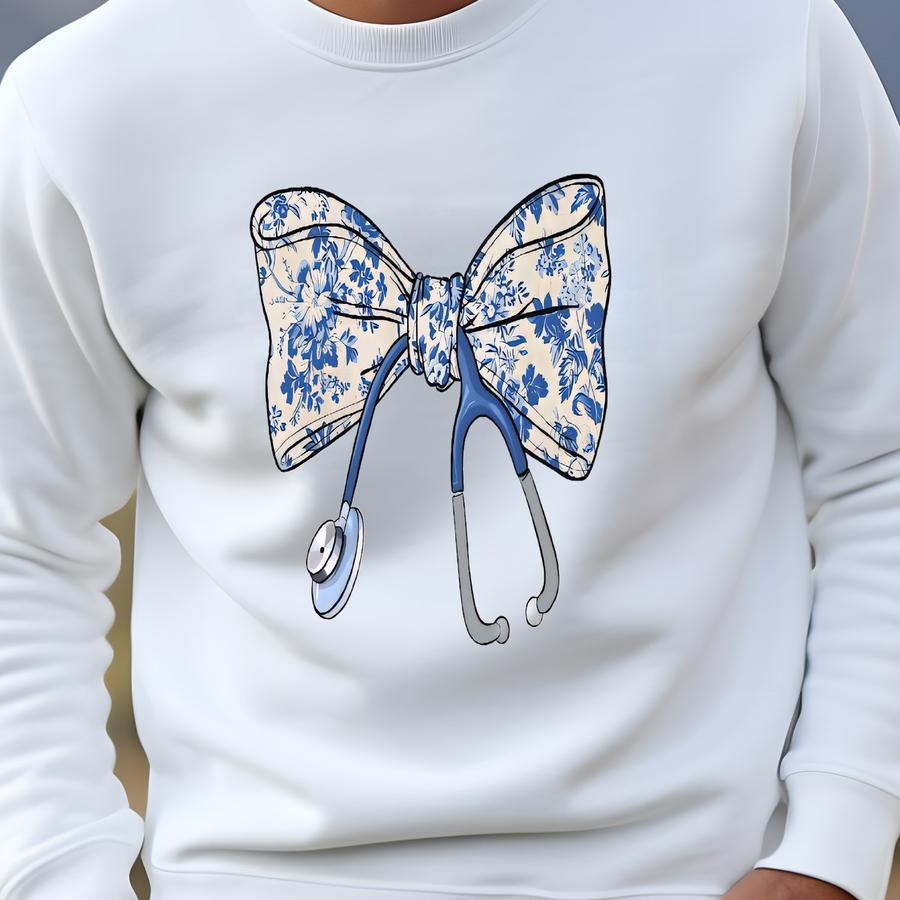Nurse With Bow Sweatshirt, Stethoscope Sweatshirt, Nurse Gift Sweatshirt