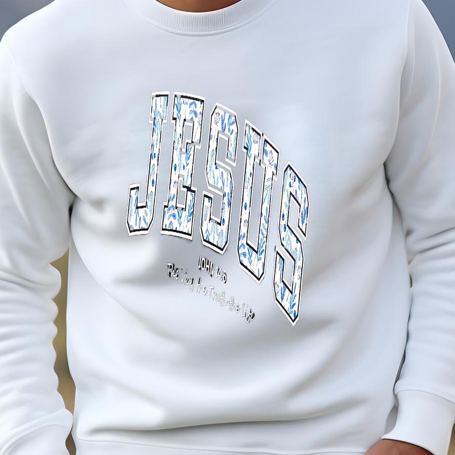 Custom Floral Jesus Sweatshirt With Name On Sve, John 14 6 Shirt, The Way The Truth The Life Sweater, Christian Crewneck Sweatshirt