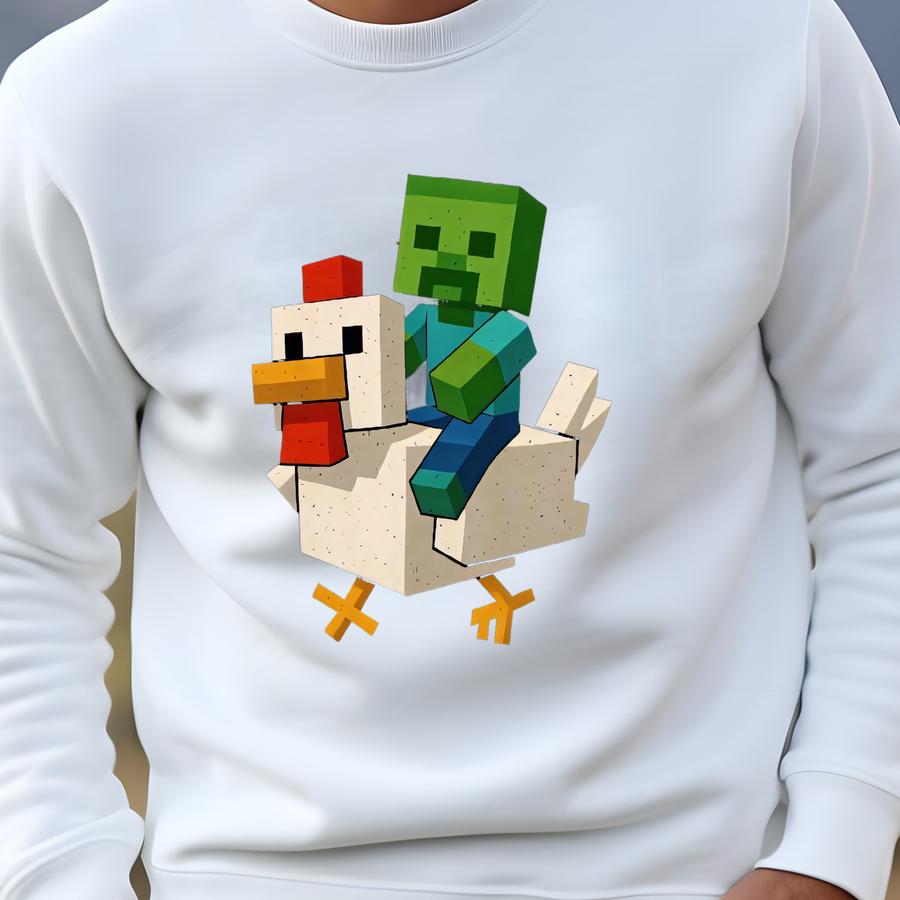 Minec Movie T-shirt, Chicken Jockey Shirt, Cartoon Graphic Shirt For Chicken Lovers, Funny Farm Animal Tee, Chicken Jockey, Gamer Gift Sweatshirt