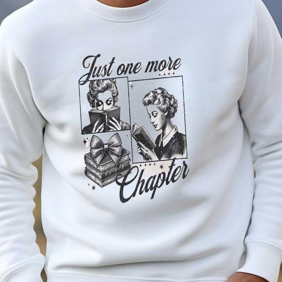 Just One More Chapter Shirt, Retro 1950s Book Sweatshirt, Reading Teacher Tshirt, Bookworm Sweater, Teacher Tee, Coquette Bow Sweatshirt
