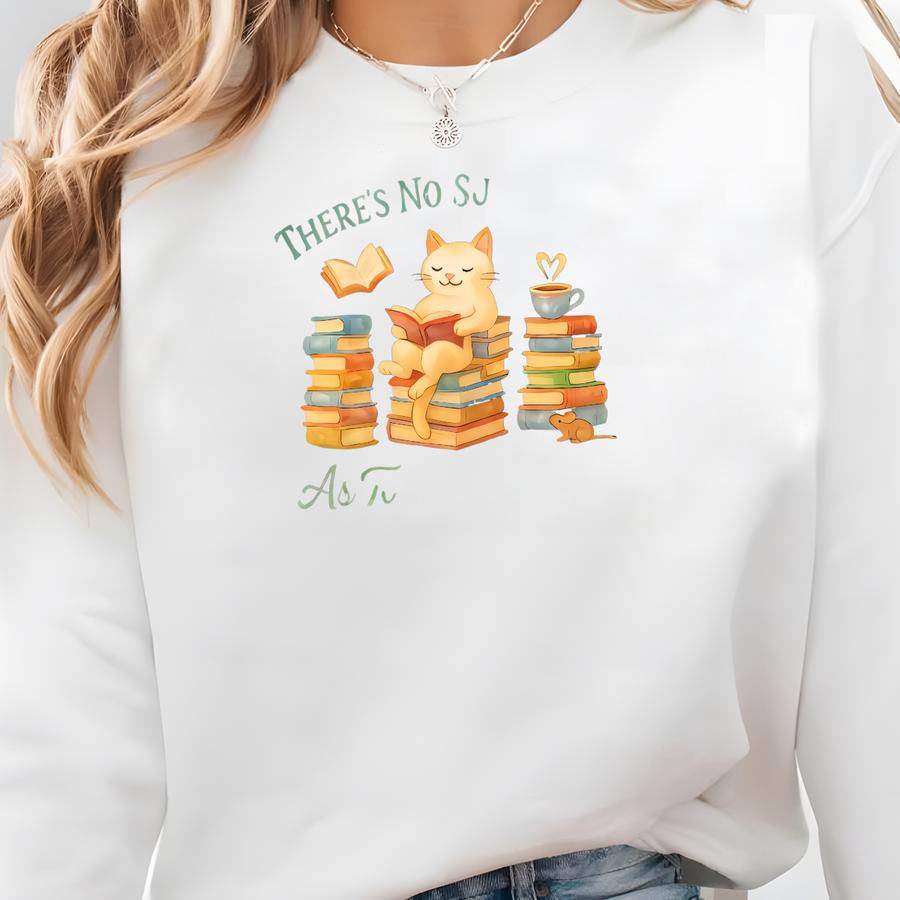 Funny Book Lover Cat Tee: Cotton Canvas Sweatshirt