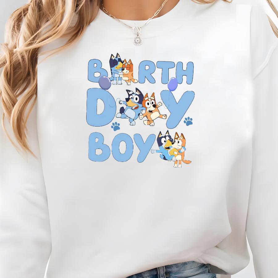 Custom Name And Age Birthday Boy Shirt Personalized Blueey Birthday Party Shirt Funny Shirt Blue Dog Inspired Shirt Gift For Birthday Shirt Sweatshirt