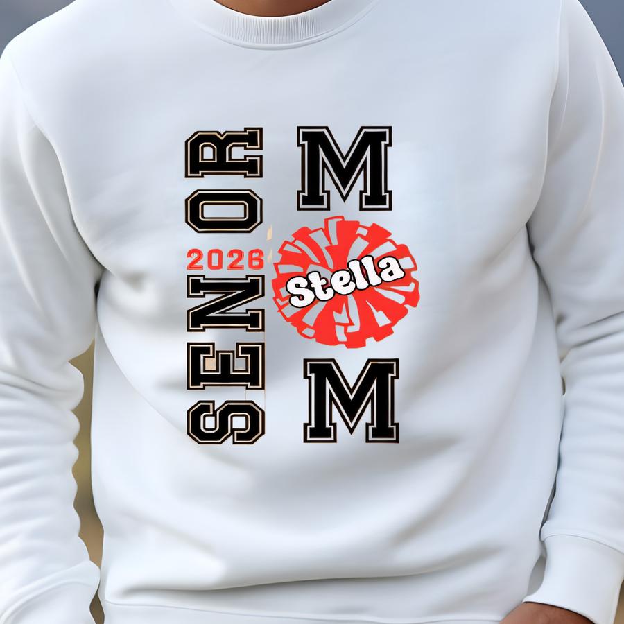 Custom Cheerleader Senior Mom Glass Tumbler, Cheer Grad Parent Gift, Personalized Cheerleading Mug, Iced Coffee Travel Cup For Senior Mom Sweatshirt