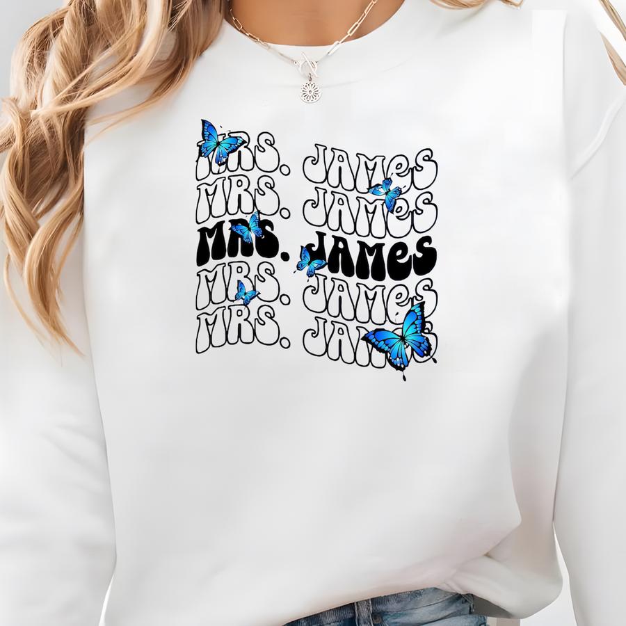Retro Personalized Mrs. Shirt, Custom Bride Shirt, Fiance Gift For Her Honeymoon Crewneck Aesthetic Miss To Mrs Tshirt Sweatshirt