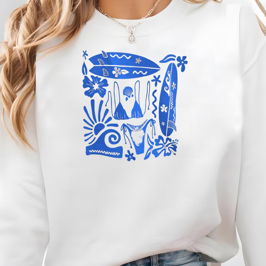 Ivory Blue Swim And Surf Tee Sweatshirt