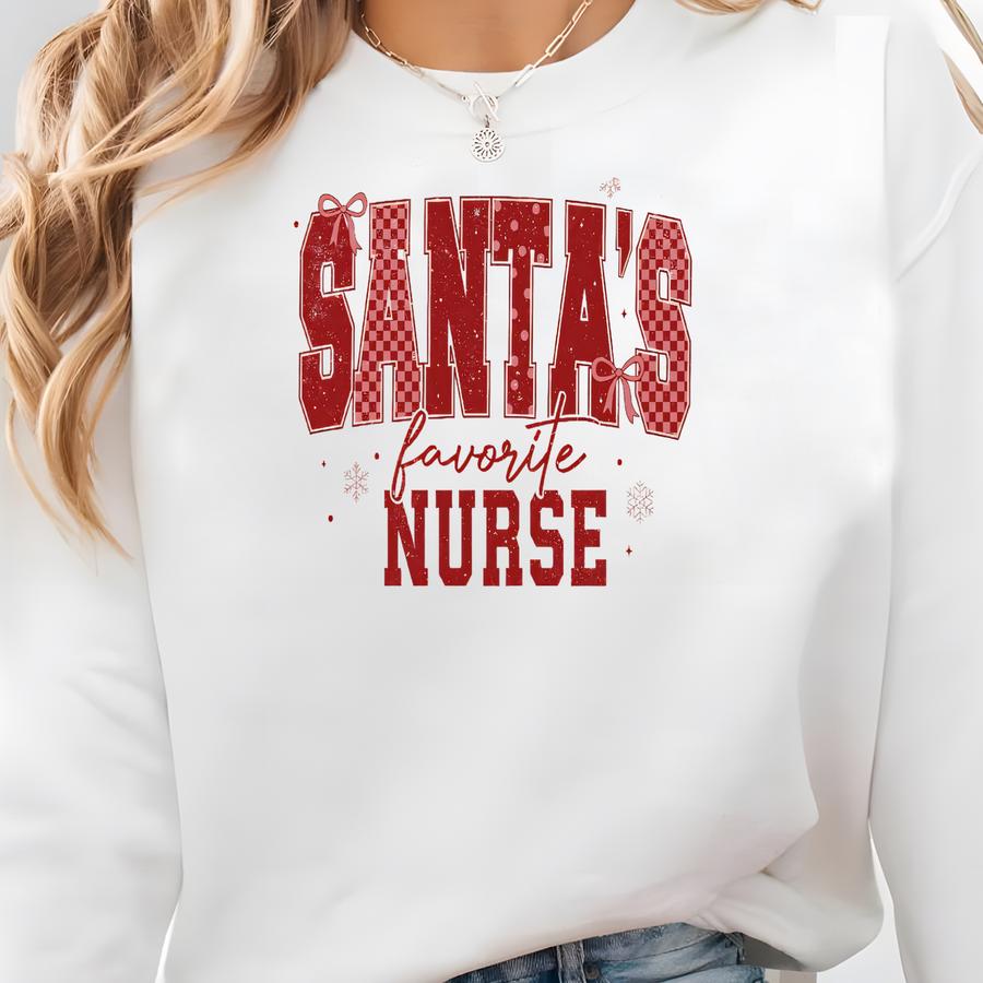 Santa's Favorite Nurse Sweatshirt: Funny Holiday Christmas Crewneck Sweatshirt