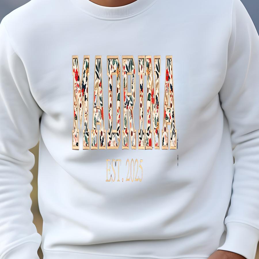 Custom Madrina Sweatshirt, Personalized Godmother Floral Applique Sweatshirt, Madrina Sweatshirt, Gift For Nana, Gigi, Mimi Sweatshirt