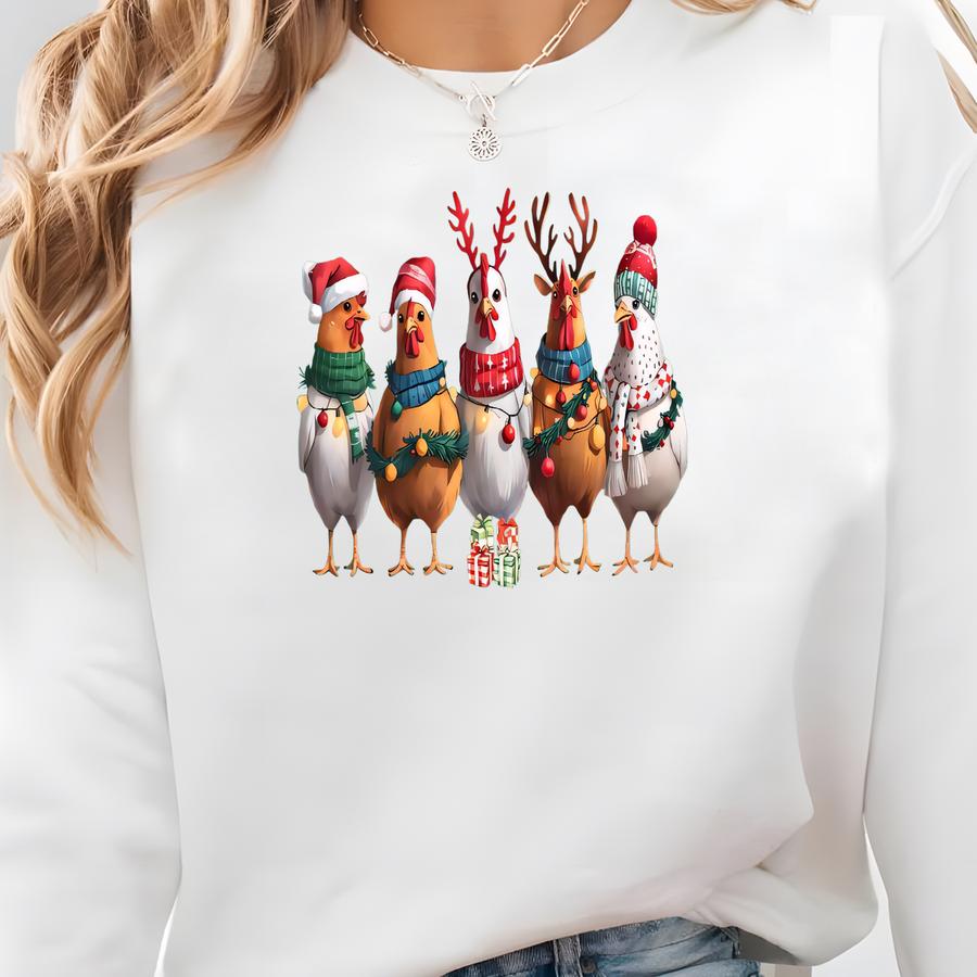 Funny Christmas Chickens Shirt, Farm Lover Gift, Christas Gift, Holiday Season Shirt, Chickens With Scarves, Christmas Farm Shirt, Sweatshirt