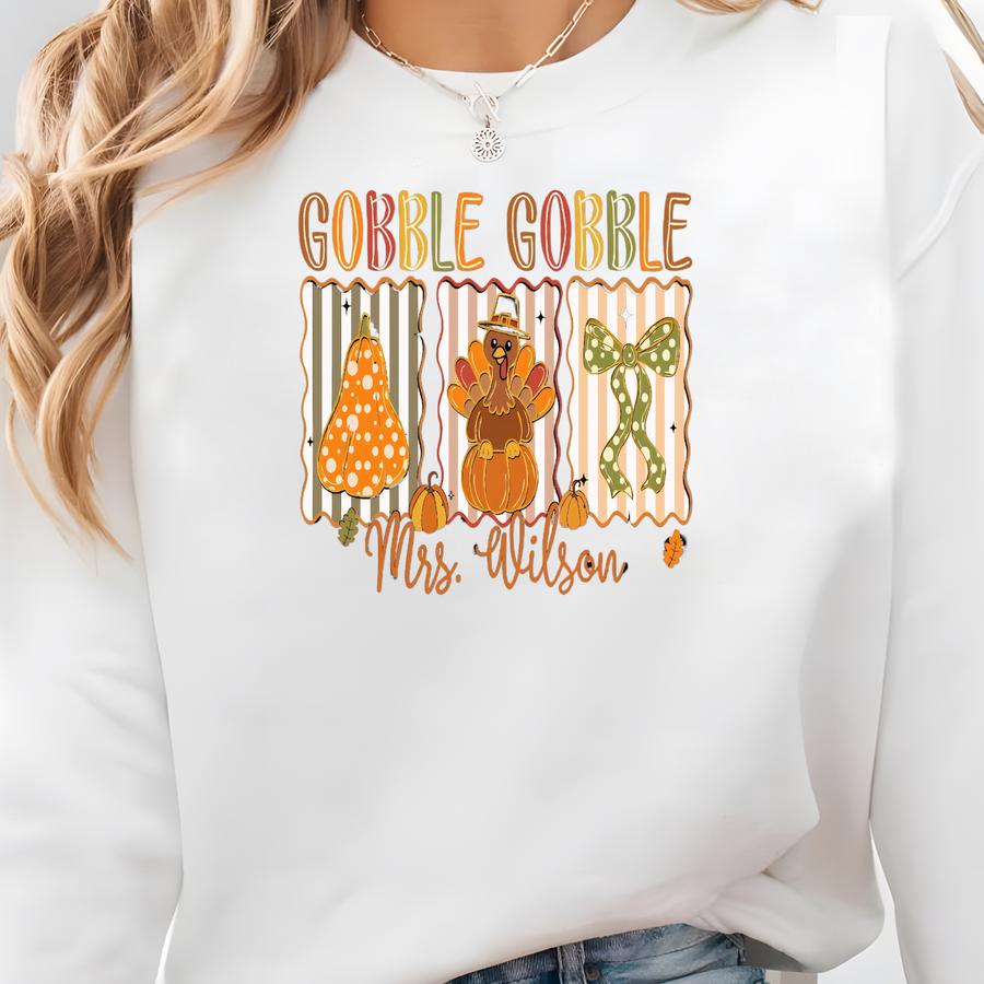 Gobble Gobble Teacher ® Shirt, Custom Turkey Teacher Shirt, Thankful Teacher Shirt, Cute Fall Thanksgiving Teacher Tee Sweatshirt