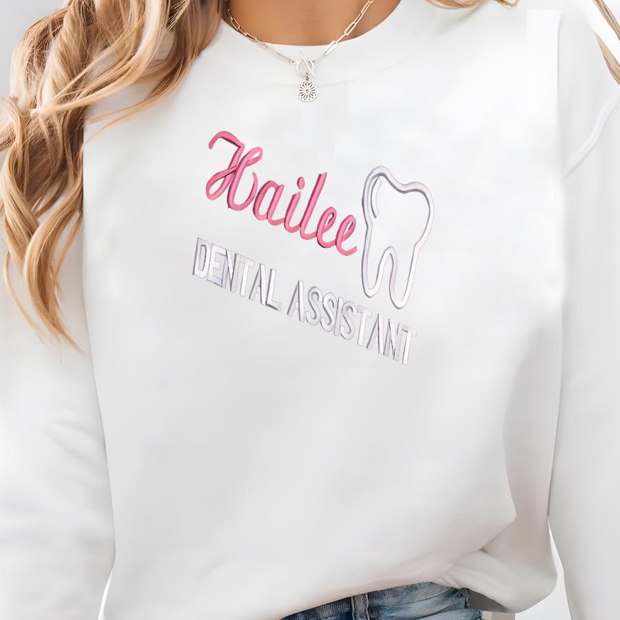 Custom Dental Assistant Quarter Zip Sweatshirt With Name Y, Personalized Gift For Hygienist Or Dental Staff, Cute Workwear Top Sweatshirt