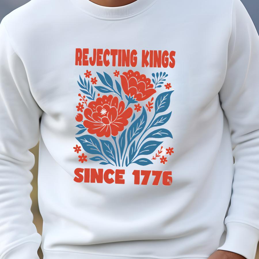 ® Rejecting Kings Since 1776 Shirt, Pro Tee, No Kings Flower Shirt, Patriotic Resist Top Sweatshirt