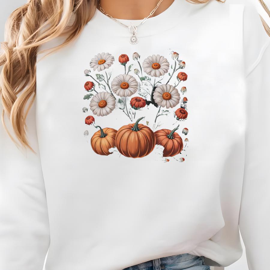 Boho Fall Floral ® Shirt, Retro Fall Tshirt, Autumn Vibes Shirt, Pumpkin Season Graphic Tee, Vintage Fall Pumpkin Aesthetic Sweatshirt