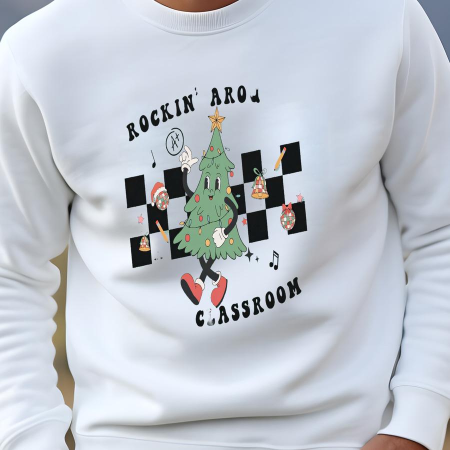 Rockin Around The Classroom Teacher Christmas Shirt, Retro Christmas Teacher Shirt, Holiday Party Shirt Sweatshirt