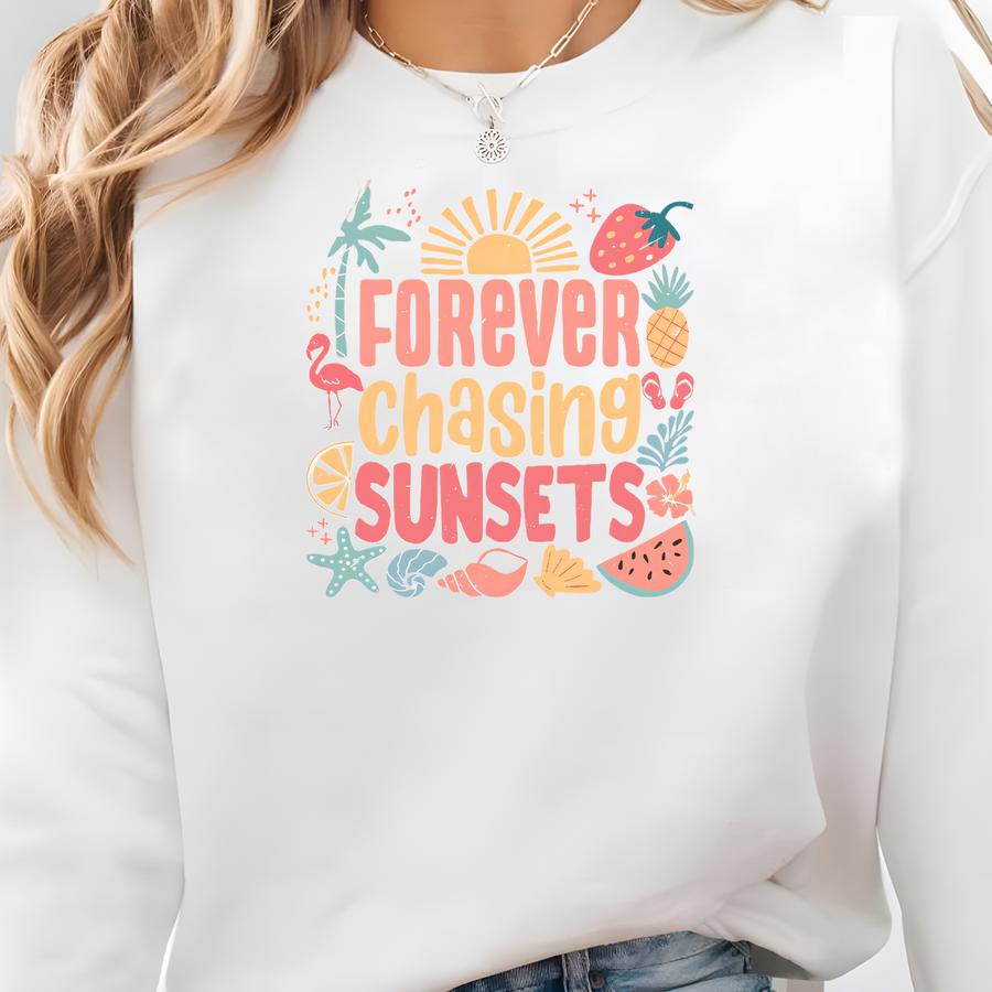 Forever Chasing Sunsets Png, Summer Sublimation Designs, Boho Foral Png, Retro Summer Png, Sunsets Png, Summer 2025 Png, Beach Tshirt Png Sweatshirt