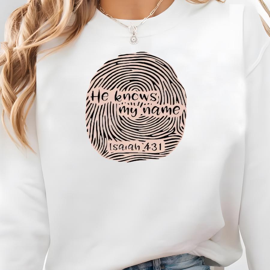 He Knowns My Name, Bible Quote, Christian Shirt, Gift Christian Shirt, Fingerprint, Woman's T-shirt, God, Jesus, Bible, Diva, Isaiah 43:1, Sweatshirt