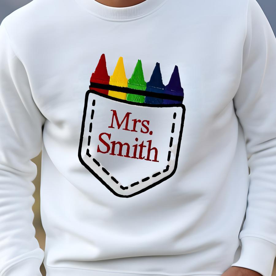 Educator Cute Shirt - Primary Crayons In A Pocket Y - Custom Monogrammed Elementary Staff Teacher Appreciation Gift Sweatshirt
