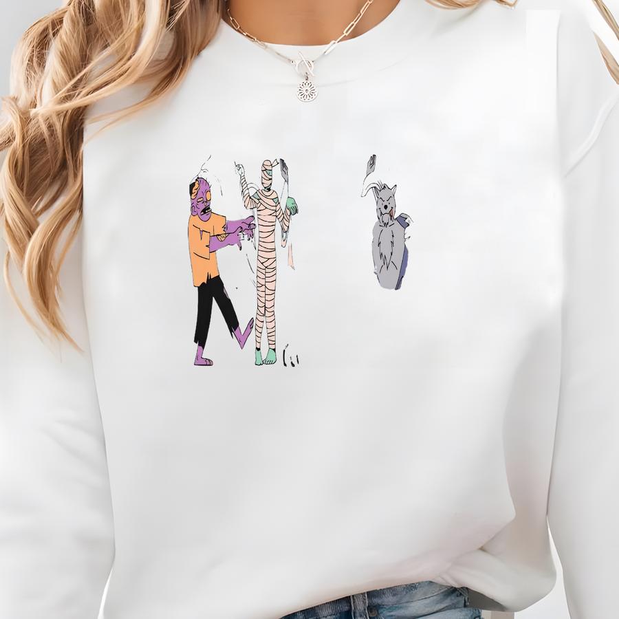 Cute Halloween T-shirt, Monster Mash Up Ghouls Gone Wild Tee- Dracula, Mummy, Werewolf, Cute Ghosts, Black Cat, Bats Sweatshirt