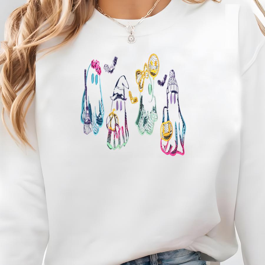 Neon Ghost Sweatshirt, Little Ghost Wine Shirt, Halloween Ghost Sweatshirt, Halloween Shirt, Ghost Tee Sweatshirt