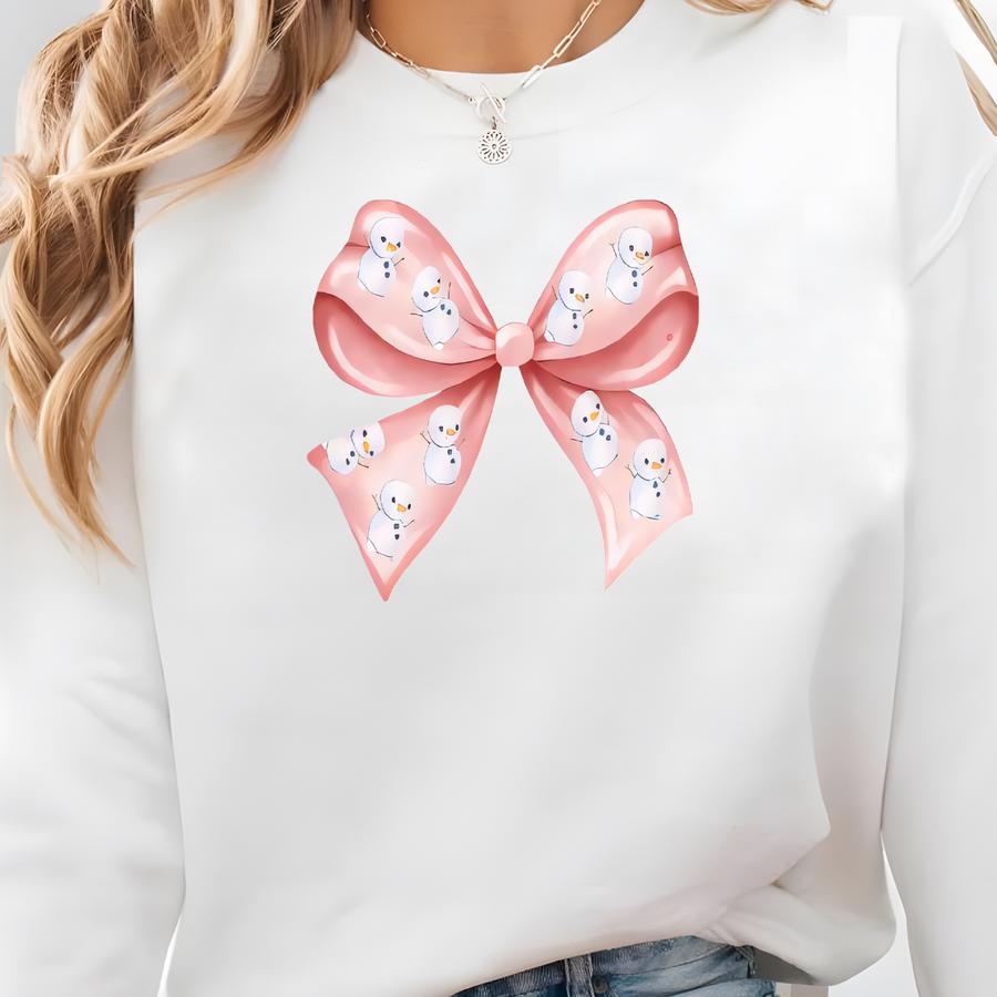 Bow Snowman Shirt, Coquette Christmas Shirt, Girly Christmas Shirt, Cute Bow Holiday Shirt, Bow Shirt, Little Snowman Shirt, Winter Sweatshirt