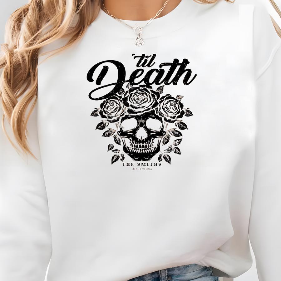 Til Death Sweatshirt, Skeleton Bride Groom Hoodie, Custom Wedding Gift, Gothic Newlywed Sweater, Just Married Couple Top, Cozy Hoodie Sweatshirt