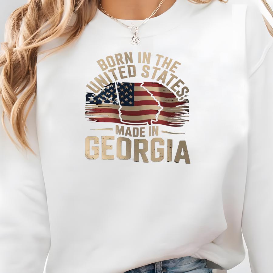 Born In Usa Made In Georgia Apparel: Patriotic American Flag Souvenir Sweatshirt