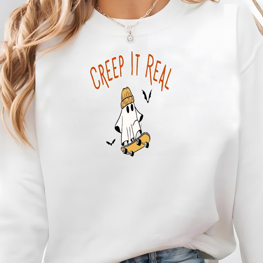 Comfort Color Creep It Real Shirt | Halloween, For Women, Halloween Gift, Ghost Shirt, Gift For Her, Fall Clothing, Pumpkin Sweatshirt Sweatshirt