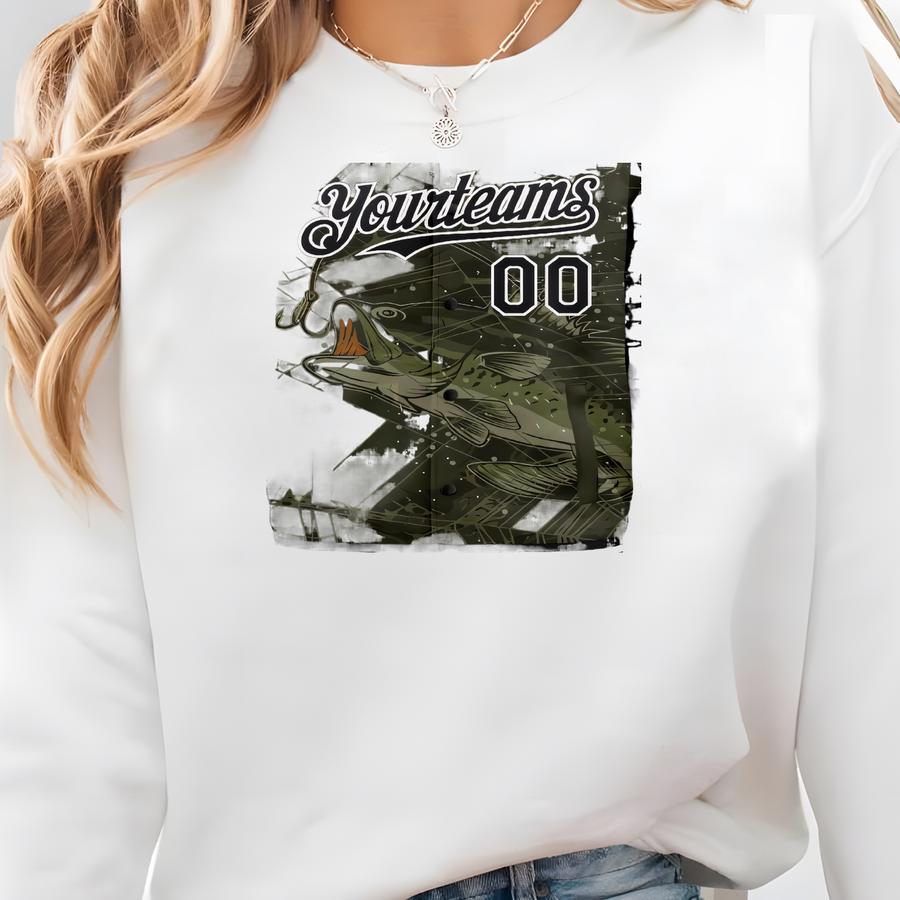 Custom Fishing Camo Varsity Hoodie: Personalized Angler Gift Sweatshirt