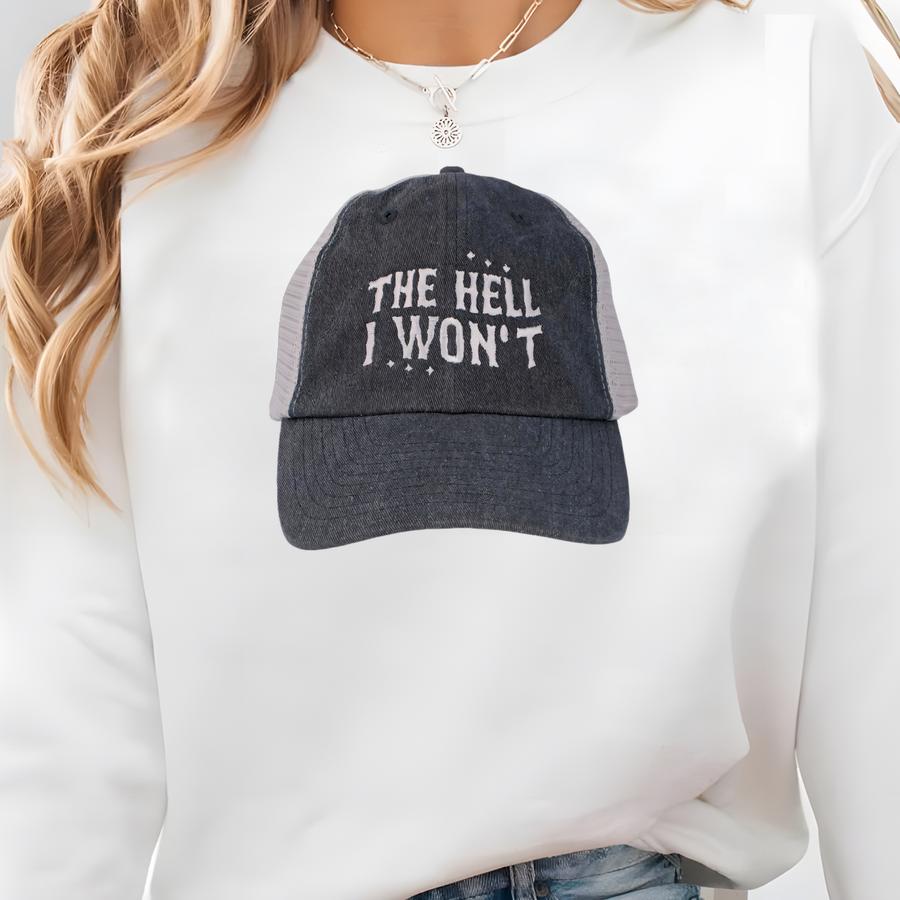 The I Won't Trucker Cap, Pigment Dyed Hat, Cute Country Western Style Hat Sweatshirt