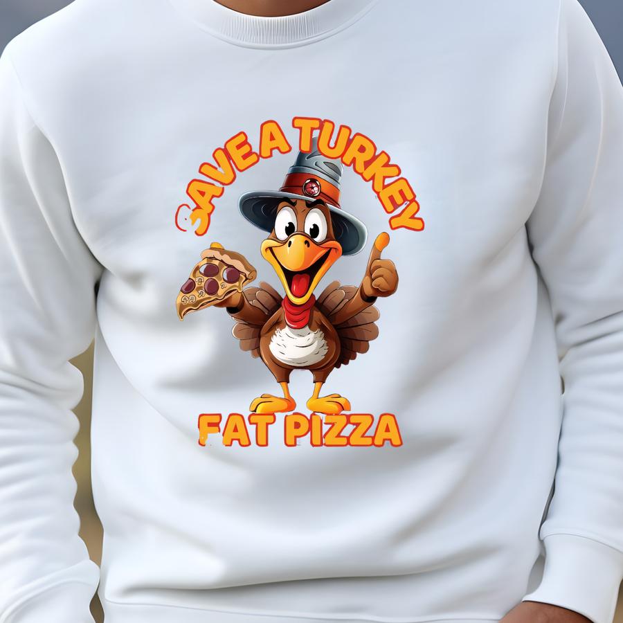 Eat Pizza Thanksgiving Tshirt Save Turkey Sweatshirt Cute Fall Sweater Kids Fall Crewneck Funny Turkey Sweater Family Reunion Dinner Sweatshirt