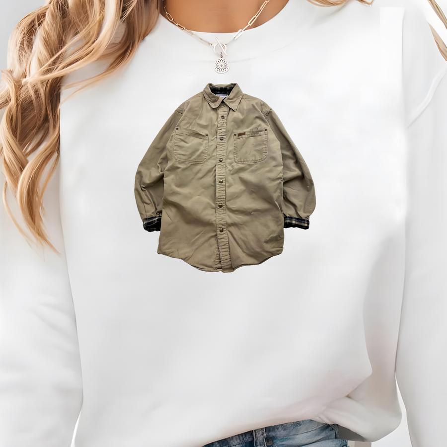 Vintage Carhartt Plaid-lined Canvas Button-up Beige Shirt Jacket Sweatshirt