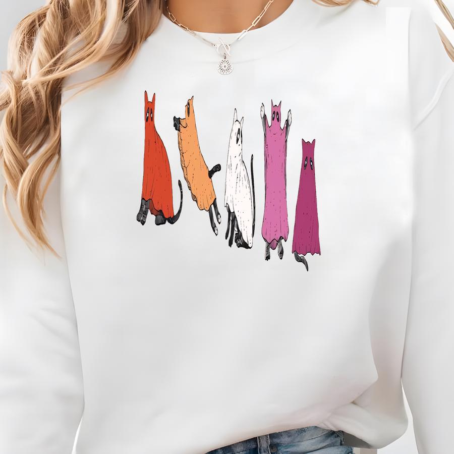 Lgbtq Halloween Shirt, Subtle Lesbian Pride Spooky Sweatshirt, Crazy Cat Lady, Ghost Crewneck, Queer Halloween Top, Cat Mom Party Costume Sweatshirt