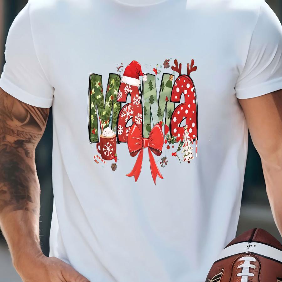 Christmas Mama Sweatshirt, Christmas Shirt, Coquette Bow Christmas Tee, Christmas Mom Gift, Family Christmas, Holiday Shirt, Gift For Mom T-shirt