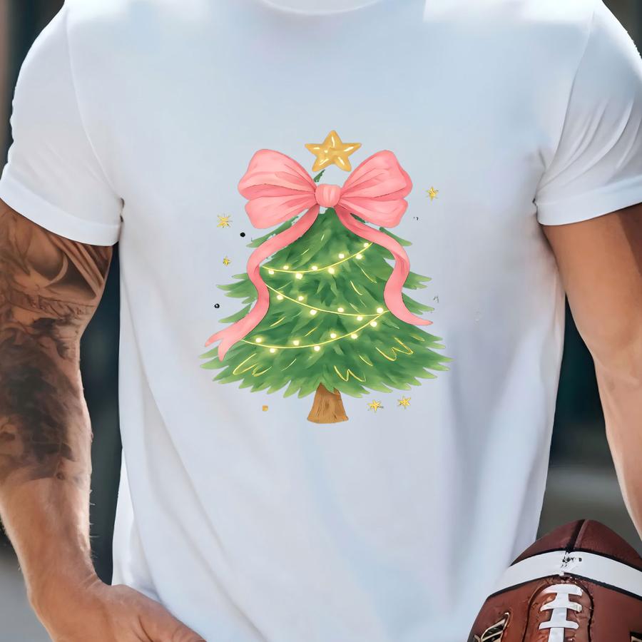 Coquette Christmas Tree Sweatshirt, Stylish Christmas Tree Shirt, Pink Christmas Bow Shirt, Merry Christmas Shirt, Girly Christmas Tree Tee T-shirt