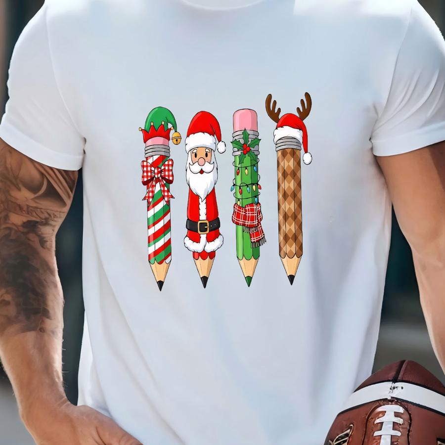 Christmas Teacher Pencil Sweatshirt, Funny Christmas Shirt, Holiday Reindeer Teacher Tee, Santa Pencil Xmas Tee, Christmas Gift For Teacher T-shirt