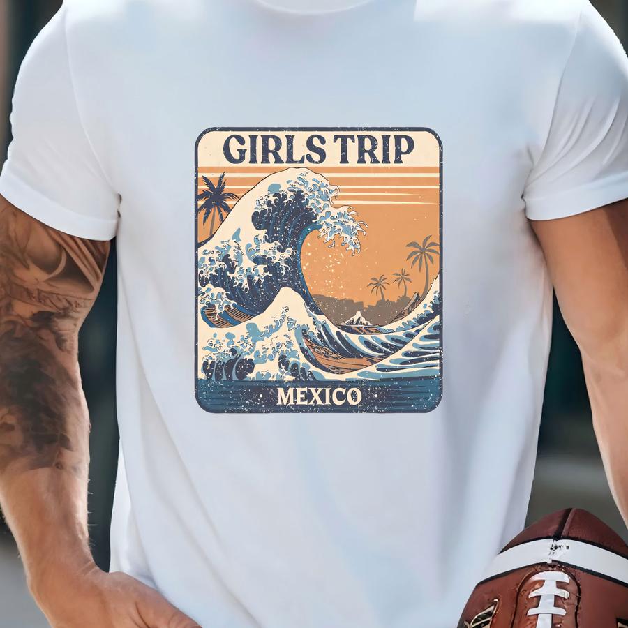 Custom Retro Girls Trip Shirt: Personalized Location Beach Vacation Crewneck Tee T-shirt